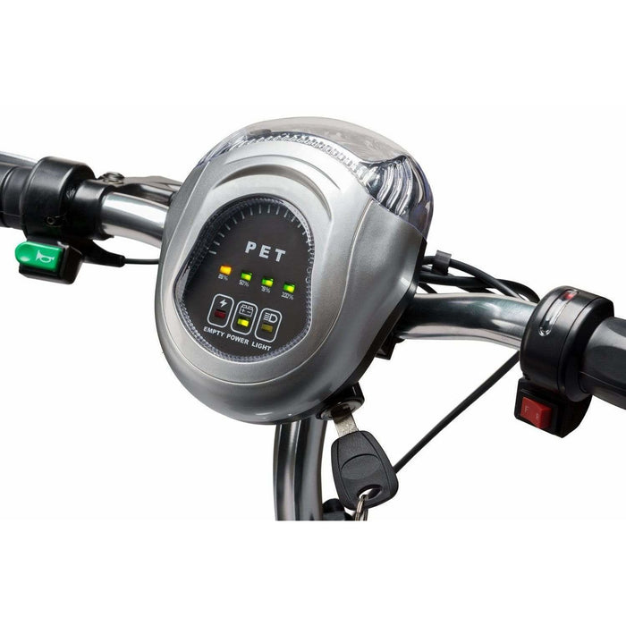 The Priority PET Pro Scooter comes with a big 48-volt 500-watt hub motor attached to the front wheel, so it is a direct drive for excellent performance on most surfaces.This electric trike is meant as a personal mobility device, and it is fairly powerful for its size so it is surprisingly fun to use in short commutes or strolls.